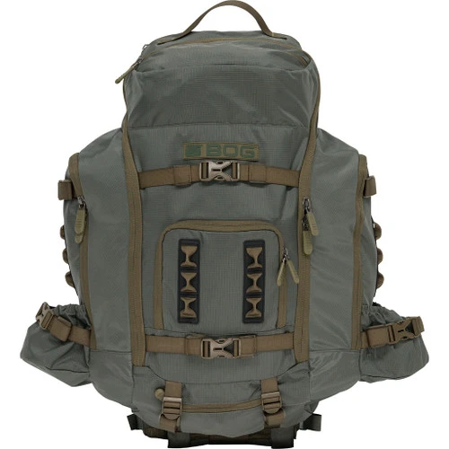 3500 Cubic inch nylon pack. Zippered side pockets and external back and top pockets. External load straps for securing gear. external daisychain loops for strapping gear to the pack.