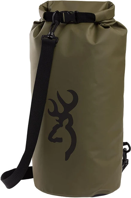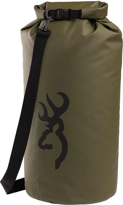 Keep your gear protected and organized with Browning Dry Ridge dry bags. Constructed from tough PVC tarpaulin fabric, the roll-top design seals out water and is secured with a durable nylon buckle. Detachable shoulder strap included. 40 liter size measures: