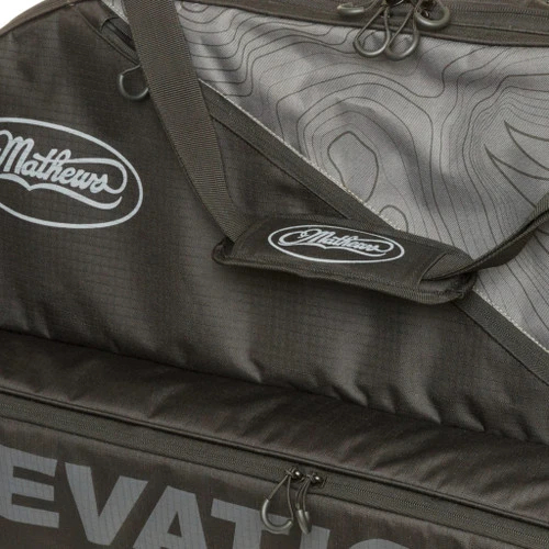 The V1 Mathews Topo Bow Case delivers just like the olive and tan V1 only it features a good dose of Mathews branding along with the Elevation topography graphics. The internal case features a string and cam cradle with deep pile micro-raschel fleece lining (black) and bow tie downs. The zippered fold-down lid pocket has three internal zippered mesh pockets and an external zippered slash pocket to handle a variety of hunting gear. Deep Pile Micro-Raschel Fleece Lining Multiple Accessory Pockets SBS Zippers Ergo-padded Handle String & Cam Cradle Bow Tie-down System Padded Shoulder Strap 41″ x 19″ x 3″ Interior 41″ x 7″ x 3″ Arrow Pocket See also V1 Topo Bow Case