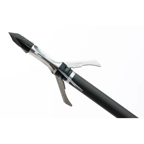 Three blade mechanical broadhead with aircraft-grade aluminum ferrule and .035″ thick blades. Features a chisel tip with mini blades for increased penetration. Includes practice head.