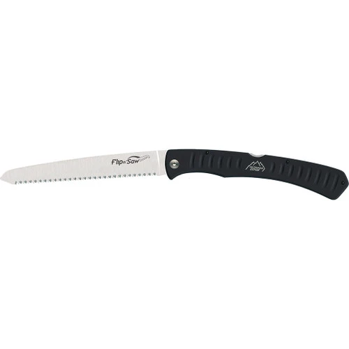 A compact folding saw with a 7” 65Mn spring-steel blade with triple ground tooth pattern for penetrating wood or bone. A 6061-T6 aircraft-grade aluminum handle with a rubberized coating. Includes a black nylon sheath.